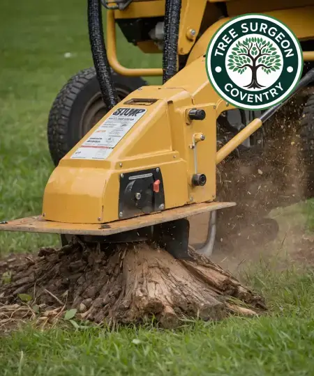 Alongside our full stump removal solutions, Tree Surgeon Coventry provides expert stump grinding services designed to completely remove the tree base and root structure. We use advanced stump grinding machinery to ensure accurate, safe results. By grinding the stump well below ground level, we eliminate the chance of regrowth and leave behind a smooth, level area suitable for future landscaping.